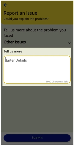 This form configuration provides a text area field with a maximum length of 1000 characters for users to provide additional details related to their support request. The label "Tell us more" and placeholder "Enter Details" help users understand what information is required in the text area field. The validation ensures that the input does not exceed the maximum allowed length. This form can be customized as per the user's requirements to suit their needs for submitting any type of request, complaint, or feedback.