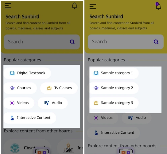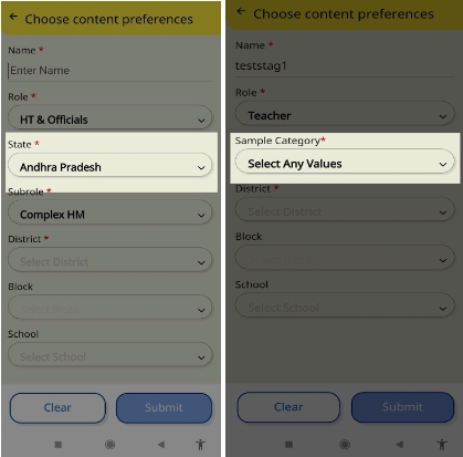 }This form is designed to provide a framework for selecting educational categories such as board, medium, class, and subject. Each category has a code, label, placeholder, frameworkCode, and supportedUserTypes.