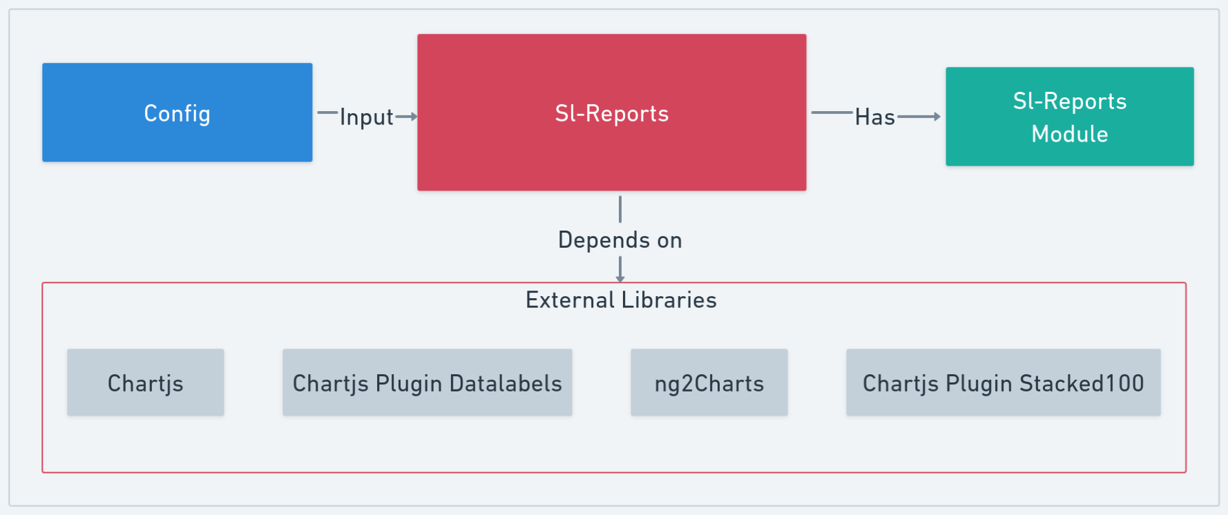 SL-Reports library is useful for rendering various types of charts leveraging plugins such as c\_hartjs\_ for visualisation of data, *chartjs-plugin-datalabels* for enhancing the readability and understanding of the charts, ng2Charts to effectively integrate chartjs with angular and chartjs-plugin-stacked100 to showcase the proportions of the datasets effectively.