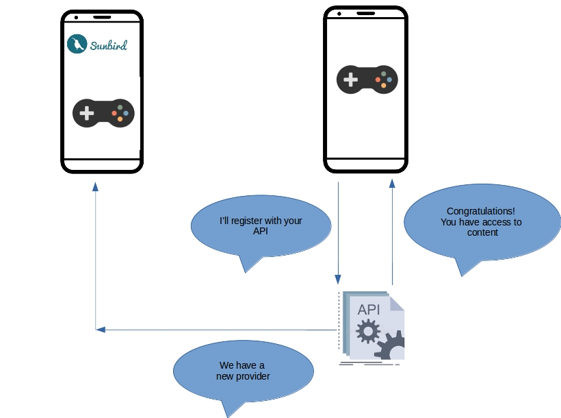 Following diagram represents the workflow of a 3rd party or custom extensions app registering and interacting with the sunbird app.