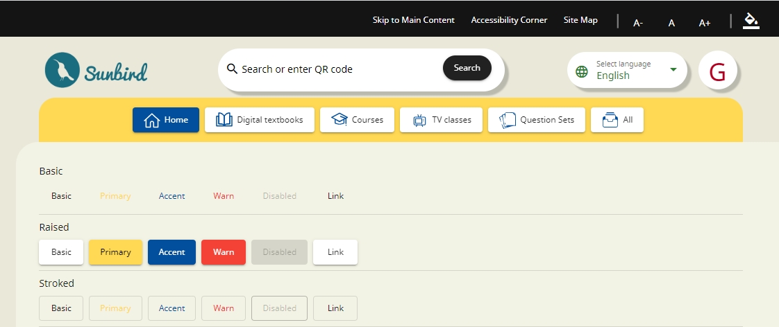 <button mat-button color="primary">Primary</button>