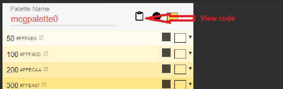 Step: 3 The "View Code" feature will produce multiple formats, and within the Sunbird-Ed portal, we've employed ANGULAR JS 2 (MATERIAL2). To incorporate the palette code into your application, simply copy it and proceed with integration.