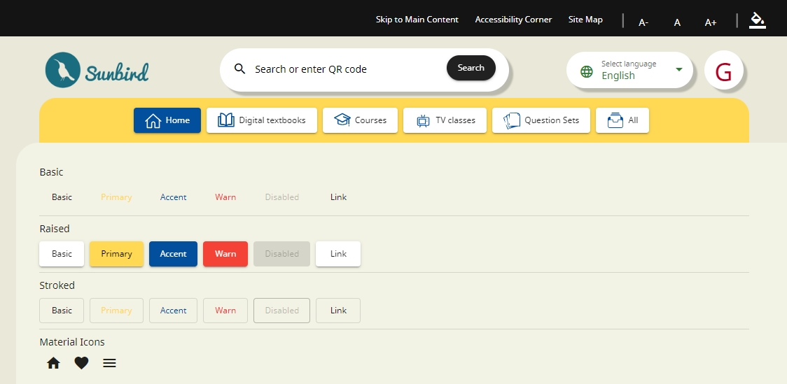 <mat-icon>menu</mat-icon>In this illustration, the icons "home," "favorite," and "menu" will be exhibited utilizing the Material Icons font, as demonstrated below.