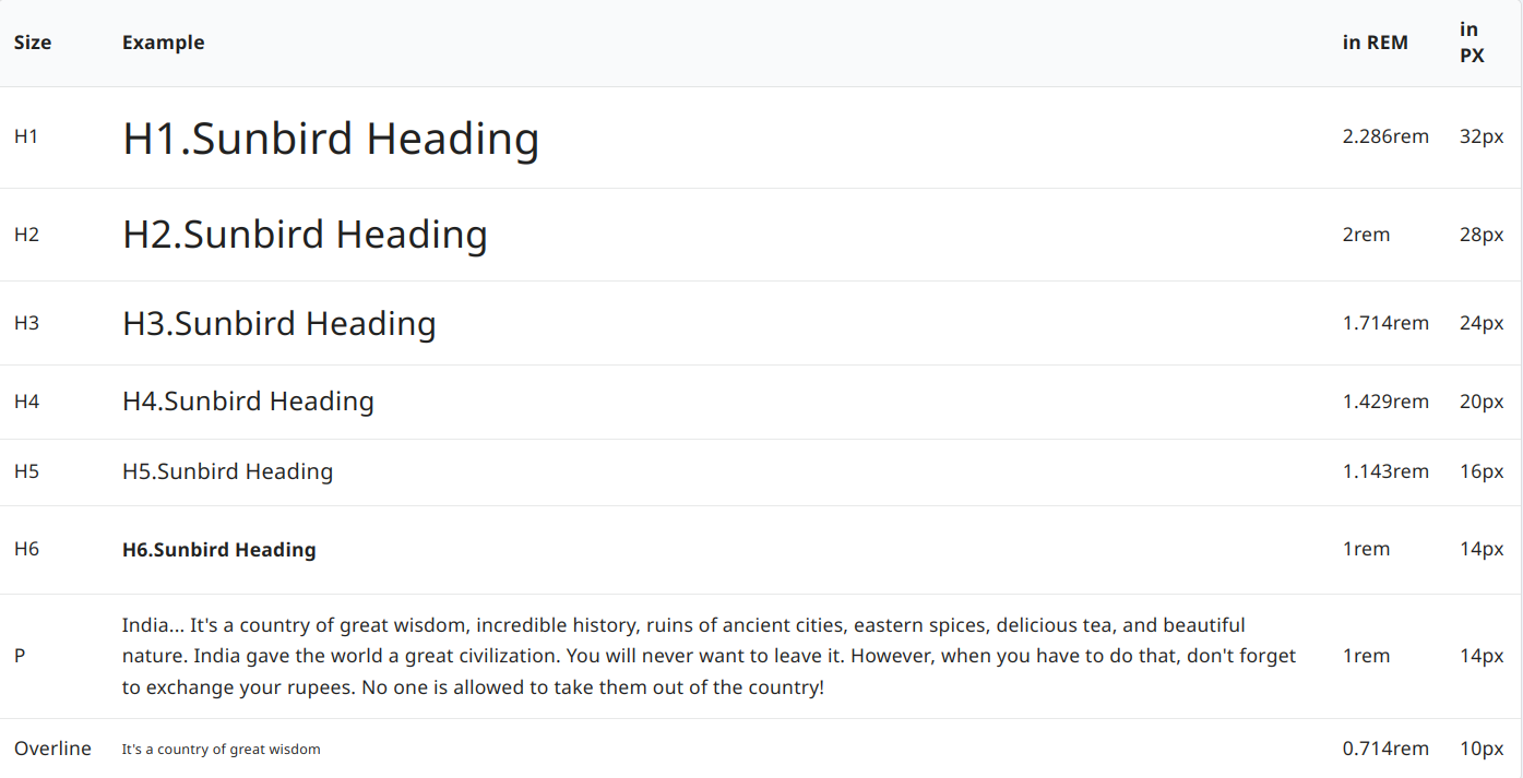 In SUNBIRD products, text serves as the primary means for teams to convey content and accomplish tasks. To ensure consistency and readability, we've carefully crafted a typographic landscape that exclusively relies on system fonts.